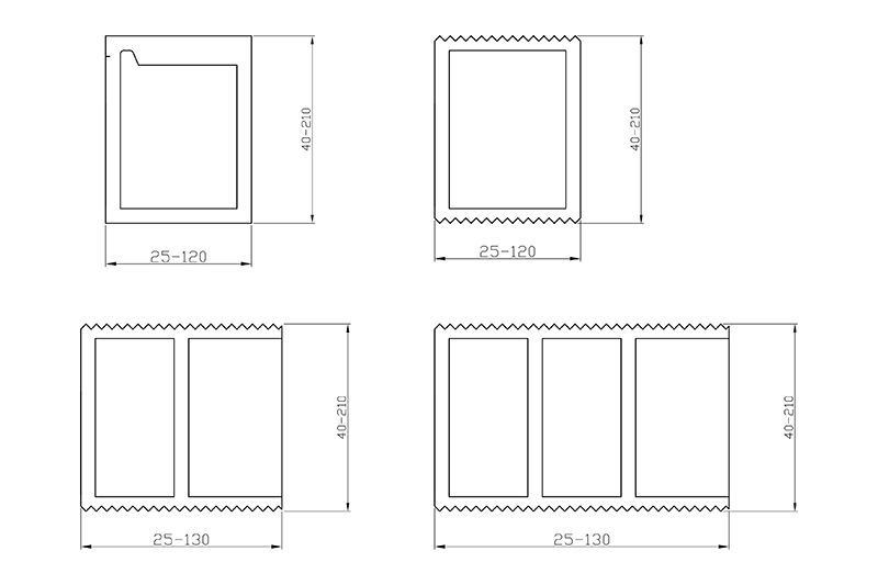 橫封輥筒分割數為: 2分割時120-210mm 3分割時80-150mm 4分割時60-120mm 6分割時40-75mm ※根據橫封寬度袋長可變范圍不同。 |